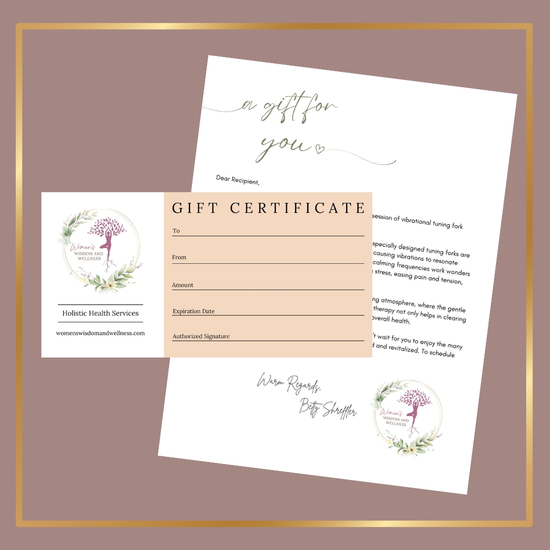 Gift Certificates feature a stunning embossed design, paired with a personalized letter that shares the details of the wellness service with your recipient.